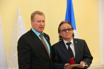 Сегодня в День российской печати, 13 декабря, в актовом зале Дома Правительства №2 состоялось вручение государственных наград представителям республиканских средств массовой информации, издательского дела и полиграфии. На торжественном мероприятии приняли участие руководитель Администрации Главы Республики Саха (Якутия) и Правительства Республики Саха (Якутия) Юрий Куприянов, первый заместитель Председателя Государственного Собрания (Ил Тумэн) Республики Саха (Якутия) Анатолий Добрянцев, народный депутат Ил Тумэна и президент Национальной вещательной компании «Саха» Иван Андросов, руководитель Департамента по делам печати и телерадиовещания Республики Саха (Якутия) Афанасий Егоров, первый заместитель руководителя Департамента по делам печати и телерадиовещания Республики Саха (Якутия) Николай Молчанов, генеральный директор АУ «Сахапечать» Филипп Пестряков, генеральный директор ОАО РИИХ «Сахамедиа» Кирилл Алексеев, генеральный директор детского издательства «Кэскил» им. Н.Е. Мординова-Амма Аччыгыйа Анатолий Гоголев, председатель Регионального отделения «Союза журналистов Республики Саха (Якутия)» Галина Бочкарева, директор Национального книжного издательства «Бичик» им. С.А. Новогородова Республики Саха (Якутия) Август Егоров.