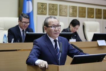 Председатель Конституционного суда Якутии, доктор юридических наук Александр Ким-Кимэн говорил о Конституции Российской Федерации как правовой основе генезиса и факторе процесса конституционного развития системы региональных органов государственной власти на примере Республики Саха (Якутия).