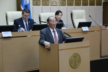 Народный депутат Верховного Совета СССР, Председатель Верховного Совета Якутской-Саха ССР XII созыва, народный депутат Государственного Собрания (Ил Тумэн) РС (Я) I, II, III созывов, Почетный гражданин Якутии Климент Иванов в своем выступлении рассказал о вкладе депутатов Верховного Совета Якутской-Саха ССР XII созыва в подготовке и обсуждении проектов Федеративного договора и Конституции Российской Федерации.
