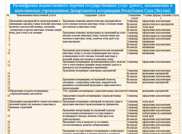 По словам Макаровой, второй год действует ведомственный перечень государственных услуг, утверждённых Минсельхозом России и Минфином России. В этот перечень вошли три услуги с расшифровкой на 34 мероприятия, на проведение которых выделяются бюджетные средства. В эти услуги входят исследования на наличие бешенства (по эпизоотологическим показаниям), сибирскую язву, бруцеллёз и хламидиоз (по эпизоотологическим показаниям); а также вакцинации от бешенства, сибирской язвы и бруцеллёза. Эти услуги предоставляются оленеводам бесплатно. Остальные исследования и вакцинации, а также клинические, лечебно-профилактические, терапевтические, хирургические, акушерско-гинекологические, ветеринарно-санитарные мероприятия и ветеринарно-санитарная экспертиза, в соответствии с соответствующими Постановлениями Правительства РФ, делаются на платной основе.