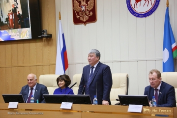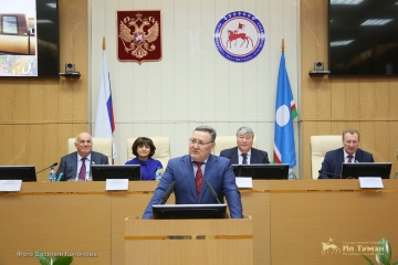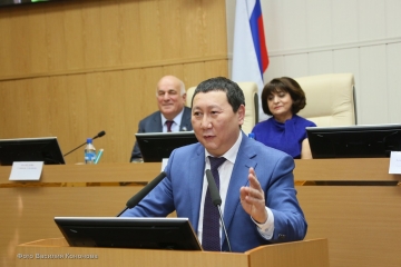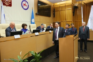 Слово для доклада о жизни и деятельности юбиляра спикер якутского парламента предоставил председателю постоянного комитета Государственного Собрания (Ил Тумэн) Республики Саха (Якутия) по экономической, инвестиционной и промышленной политике, предпринимательству, туризму и развитию инфраструктуры Виктору Федорову.