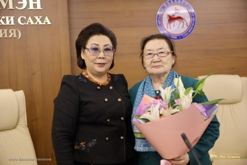 От имени якутского парламента и клуба женщин-парламентариев участники совещания поздравили Ульяну Винокурову, доктора наук, профессора Арктического государственного института культуры и искусств, с присуждением общественной премии «Якутянин года-2019».