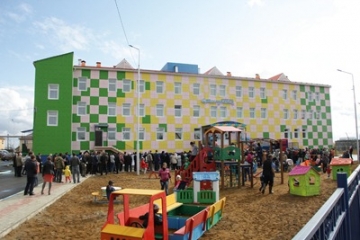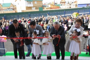 Выступления воспитанников и коллектива работников садика «Жемчужинка», образцового коллектива республики фольклорного ансамбля «Одун» украсили торжественное мероприятие открытия нового садика. Церемония завершилась общим фотографированием у крыльца нового здания и экскурсией по зданию.