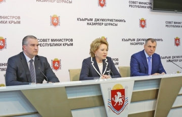 Валентина Матвиенко подчеркнула, что для развития Республики Крым необходимо скорейшее начало функционирования свободной экономической зоны, эффективная реализация Федеральной целевой программы, а также активное дорожное строительство.