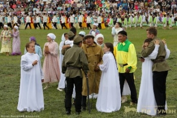 Далее гостям Ысыаха показали театрализованное представление о возвращении участников Великой Отечественной войны в родную Якутию и тот самый Ысыах Победы, который был проведён в 1945 году 70 лет назад.
