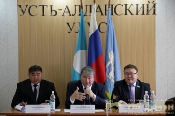В селе Борогонцы Усть-Алданского улуса Председатель Государственного Собрания (Ил Тумэн) Республики Саха (Якутия) Александр Жирков провел рабочее совещание по проблемным вопросам социально-экономического развития Мюрюнского наслега, в котором приняли участие глава Усть-Алданского улуса Алексей Федотов, первый заместитель министра архитектуры и строительного комплекса РС(Я) Павел Аргунов, заместитель руководителя департамента Министерства жилищно-коммунального хозяйства и энергетики РС(Я) Алексей Андреев, заместитель главного инженера ГУП «ЖКХ РС(Я)» Юрий Сутемьев, депутат Ил Тумэна Михаил Габышев, руководители администрации улуса, наслега, предприятий.