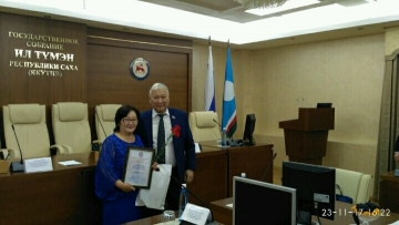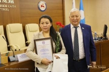 Парламентарий поздравил с наступающим Всероссийским днем матери, пожелал матерям-героиням счастья, крепкого здоровья, благополучия и вручил Благодарственные письма председателя постоянного комитета Государственного Собрания (Ил Тумэн) Республики Саха (Якутия) по земельным отношениям, природным ресурсам и экологии.