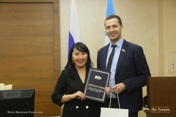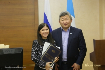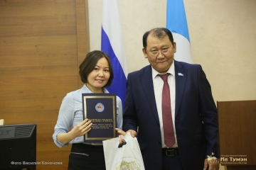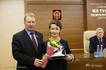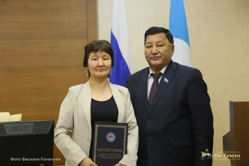 В завершении выступления парламентарий вручил Благодарственное письмо заместителя Председателя Государственного Собрания (Ил Тумэн) Республики Саха (Якутия) корреспонденту информационной службы ГТРК «Саха» Анне Лебединской.
