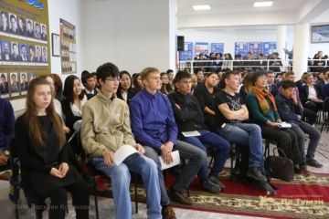 После торжественного митинга в музее истории государственности Республики Саха (Якутия) имени М.К. Аммосова состоялся урок, где народные депутаты Алексей Еремеев и Антонина Григорьева рассказали студентам-первокурсникам о становлении и развитии государственности Республики Саха (Якутия).