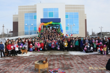 После традиционного обряда благословения алгыс символический ключ от нового здания подрядчик, руководитель ООО «Электромонтаж» Василий Пинигин вручил директору детского технопарка Константину Шелковникову.
