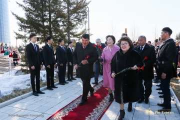 К памятнику выдающегося политического и государственного деятеля Якутии Максима Аммосова живые цветы возложили глава республики Айсен Николаев, спикер Ил Тумэна Петр Гоголев, глава Намского улуса Юрий Слепцов, председатель улусного Совета депутатов Иван Попов, парламентарии, члены правительства Якутии, представители предприятий, организаций, научных учреждений, школьники и жители улуса.
