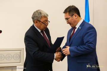 От имени Государственного Собрания (Ил Тумэн) – высшего законодательного представительного органа государственной власти на территории РС (Я) всех участников собрания с Днем Республики поздравил председатель Госсобрания (Ил Тумэн) РС (Я) Петр Гоголев.