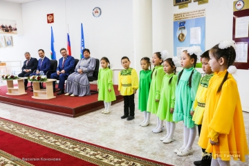 После торжественного возложения цветов к памятнику Максиму Аммосову участники собрания прошли в здание музея истории государственности, где их встречал оркестр Намской детской школы искусств им. З.П. Винокурова.
