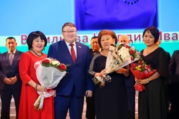 Глава улуса вручил звание «Заслуженный работник культуры Республики Саха (Якутия)» главному библиографу Усть-Алданской межпоселенческой централизованной библиотечной системы Анне Бурнашевой, знак «Почетный гражданин Усть-Алданского улуса» заслуженному артисту Республики Саха (Якутия) Федоту Львову, матери-героине Марие Жирковой, воспитателю детского сада «Кэнчээри» Клавдие Васильевой.