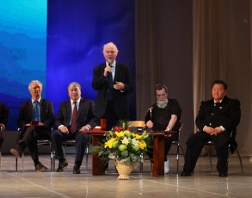 Знаменитый нивхский писатель Владимир Санги показал участникам торжественного вечера самый дорогой для него документ – удостоверение секретаря Правления Союза писателей России, датированный 1975 годом. Он рассказал, как по его предложению была создана Комиссия по литературам и фольклору народностей Севера Союза писателей РСФСР, результатом работы которой стало издание по инициативе Владимира Михайловича библиотеки «Литература народностей Севера» из 12 томов. «Сегодня, когда российские писатели во всех регионах испытывают определённые трудности, Республика Саха (Якутия) созвала всех в Якутию, которую я называю страной-академией межнациональных отношений. Именно Якутия, являясь эталоном сожительства многих национальностей, поможет становлению литератур всех народов», - выразил уверенность Владимир Санги.