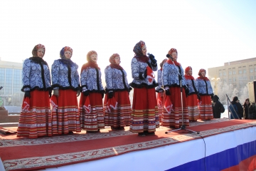 Мероприятие открыл народный хор русской песни «Раздолье», под руководством заслуженного работника культуры Республики Саха (Якутия) Лидии Яйлиян, с песней «Красное солнышко».