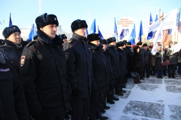 В митинге, прошедшем на площади Ленина, приняли участие народные депутаты республики Антонина Григорьева, Елена Голомарева, Гульсум Бейсембаева, член Центральной избирательной комиссии Республики Саха (Якутия), председатель регионального отделения ДОСААФ России в Республике Саха (Якутия), воин-интернационалист Сергей Черных, председатель республиканской общественной организации «Башкирский культурный Центр «Якташ»» Римма Хущамова, члены Правительства Республики Саха (Якутия), общественные лидеры, представители общественных организаций, национальных культурных объединений, жители и гости города Якутска.