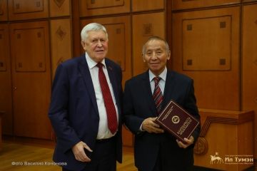 В заключение своего поздравления заместитель Председателя Ил Тумэн Виктор Губарев пожелал общественному и политическому деятелю республики крепкого здоровья, удачи, благополучия и за многолетнюю плодотворную работу в социально-экономической сфере Республики Саха (Якутия) вручил Благодарность Председателя Государственного Собрания (Ил Тумэн) Республики Саха (Якутия) с вручением серебряного знака. Вице-спикер также вручил юбиляру медаль «300 лет М.В. Ломоносова».