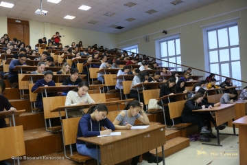 В главном корпусе Северо-Восточного федерального университета им. М.К. Аммосова к акции присоединился Председатель Государственного Собрания (Ил Тумэн) РС(Я) Петр Гоголев. Спикер приветствовал участников и пожелал им успешного написания диктанта.