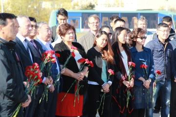 Сегодня, 8 сентября 2016 года, на площади Победы состоялась торжественная церемония памяти и возложения цветов к мемориальной плите городу-герою Ленинграду, посвященной 75-й годовщине со дня начала блокады.