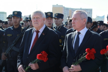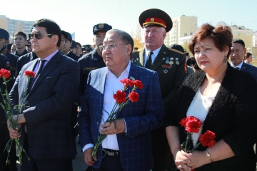 В торжественной церемонии приняли участие заместитель Председателя Государственного Собрания (Ил Тумэн) Виктор Губарев, глава городского округа «город Якутск» Айсен Николаев, министр по делам молодежи и семейной политики Республики Саха (Якутия) Афанасий Владимиров, министр труда и социального развития Республики Саха (Якутия) Александр Дружинин, заместитель Председателя Якутской городской Думы Семен Филиппов, члены Правительства Республики Саха (Якутия), народные депутаты, ветераны, молодежь, общественность, жители и гости столицы.
