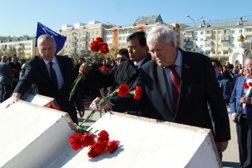 Торжественная церемония завершилась возложением цветов к мемориальной плите города-героя Ленинграда.