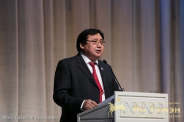 Громкими аплодисментами зал встретил Председателя Народного Хурала Республики Бурятия Владимира Павлова, приветствовавшего участников торжества на якутском языке.