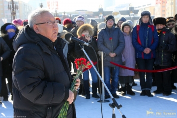 В Якутске состоялась торжественная церемония возложения цветов к мемориальной плите города-героя Севастополя, посвященной годовщине воссоединения Крыма с Россией.