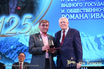 Заместитель Председателя Государственного Собрания (Ил Тумэн) Республики Саха (Якутия) Виктор Губарев от имени председателя организационного комитета юбилейных мероприятий, Председателя Государственного Собрания (Ил Тумэн) Республики Саха (Якутия) Александра Жиркова поздравил со знаменательной датой и отметил особую роль сына эвенского народа в становлении государственности северных окраин.