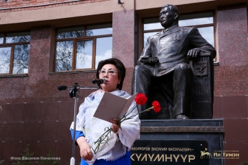 Председатель постоянного комитета Ил Тумэна по науке, образованию, культуре, СМИ и делам общественных организаций Феодосия Габышева, приветствуя участников торжественного мероприятия, отметила, что Василий Никифоров-Кюлюмнюр является личностью общероссийского масштаба.