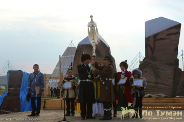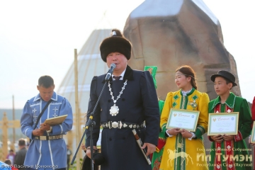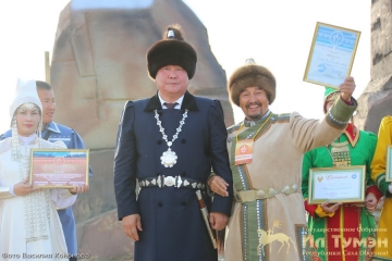 Председатель Государственного Собрания (Ил Тумэн) Республики Саха (Якутия), председатель Национального организационного комитета республики по подготовке и проведению второго Десятилетия Олонхо Александр Жирков наградил победителей главных конкурсов национального праздника.