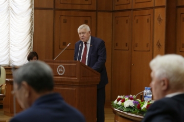 Участников общего собрания (XVIII конференции) членов Союза муниципальных контрольно-счетных органов РФ приветствовал вице-спикер Госсобрания (Ил Тумэн) Виктор Губарев.