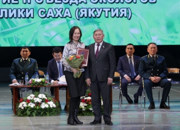 От имени парламента Якутии Владимир Прокопьев вручил Благодарность Председателя Государственного Собрания (Ил Тумэн) с вручением серебряного знака главному специалисту Управления экологической безопасности Министерства охраны природы Якутии Марианне Петровой, Почётную грамоту постоянного комитета Ил Тумэна по земельным отношениям, природным ресурсам и экологии – начальнику Управления экологической безопасности Министерства охраны природы республики Вере Степановой.