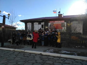 В честь возложения цветов к бюсту Максима Аммосова студенты Якутского музыкального коллежда им. М.Н. Жиркова в торжественной обстановке исполнили гимн Якутии.