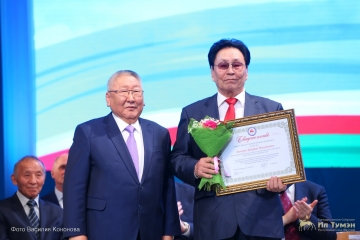 По традиции торжественное заседание продолжилось вручением государственных наград Российской Федерации и Республики Саха (Якутия). За весомый вклад в развитие горной промышленности, алмазодобывающей отрасли, особые заслуги в социально- экономическом развитии республики и многолетний добросовестный труд орденом Республики Саха (Якутия) «Полярная звезда» награждён директор прииска «Молодо» акционерного общества «Алмазы Анабара», заслуженный горняк Республики Саха (Якутия) Михаил Маковей. Отметили заслуги М.Маковея в организации работы на необустроенном прииске «Молодо» в Заполярье. Под его руководством на прииске построены дороги, мосты, производственные здания, объекты социальной сферы, а прииск оборудован всей необходимой техникой для успешной работы промышленного предприятия.