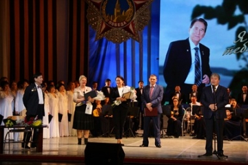 Спикер также поздравил Галину Ивановну Самсонову, супругу юбиляра с днем рождения, который исполнился днем раньше -- 1 июня. «Галина Ивановна – выдающийся педагог, 44 года бессменно работала в ЯГУ на кафедре методики преподавания истории. Хочу передать Вам уважение целой плеяды, целого поколения студентов, которые испытывали и сейчас испытывают это уважение к вам, и поблагодарить Вас в этот памятный день», - сказал Александр Жирков и от имени парламента вручил Галине Самсоновой высшую награду Ил Тумэна – Почетную грамоту с золотыми часами.