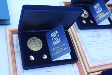Семьи, прожившие в законном браке не менее 25 лет, получившие известность среди сограждан крепостью семейных уз, воспитавшие детей достойными членами общества, награждены медалью «За любовь и верность».