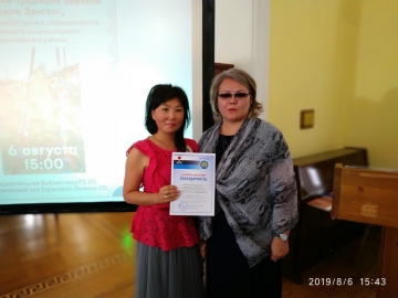 В Историческом зале Национальной библиотеки 6 августа состоялась презентация книги «Культурные традиции эвенков земли Эдигэн», авторами которой являются Ирина Бурцева и Павел Дьяконов. Как отметили на презентации авторы книги, в Жиганском районе ведется активная работа по сохранению и возрождению языка и культуры эвенков. Необходимо систематизировать различные источники, будь то музейные экспонаты или библиотечный фонд, воспоминания жителей района. Книга базируется на выпускной работе Павла Николаевича, в которой он изучал традиционные праздники эвенков, возрождение празднования эвенкийского Нового года в Якутии, праздника встречи Бакалдын. Затем книга начала обрастать теми мероприятиями, что проводятся в наслегах района, в его учебных заведениях, учреждениях культуры.
