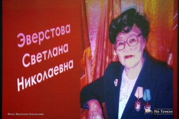 Манна кэнники кэмҥэ тэрээһиннэргэ киэҥник тарҕаммыт хаартыскаҕа түһэр сир оҥорбуттарын бэлиэтиибит. Маҥан былаатынан сабыллыбыт төгүрүк остуолга Алампа Дуунньатынаан түспүт хаартыскалара турар. Өйдөөн көрдөххө, Дуунньа хатыҥтан оҥоһуллубут ыскамыайкаҕа олорор. Быыстапканы тэрийээччилэр оруобуна ити ыскамыайканы үтүгүннэрэн ааспыт кэм тыынын тилиннэрбиттэр. Истиэнэҕэ Василий Никифоров–Күлүмнүүргэ анаммыт киинэ көстө турара, бу түһүмэх XX үйэҕэ театр төрүттэниитигэр анаммытын туоһулуур.