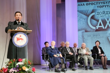 Саха Өрөспүүбүлүкэтин судаарыстыбаннай сүбэһитэ Андрей Борисов “Саха дойдута” бастакы сахалыы хаһыат уонна “Саха саҥата” сурунаал үбүлүөйдэринэн театр саалатыгар мустубут дьону эҕэрдэлээтэ. Андрей Саввич көрөөччү болҕомтотун норуот интеллигенциятыгар уурда, кинилэр норуоттарын инникилэрин туһугар туруулаһар, кырдьыгы батыһар улахан суолталаах үлэни оҥороллорун, кинилэр ытыктаныахтаахтарын, чиэстэниэхтээхтэрин эттэ.