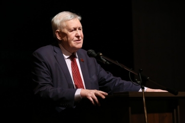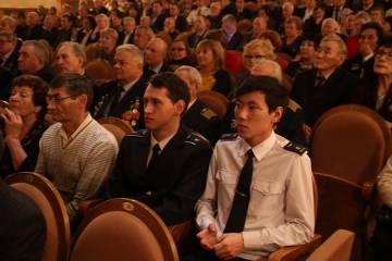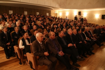 В честь знаменательного события сегодня в Государственном академическом русском драматическом театре имени А.С. Пушкина состоялось торжественное собрание общественности.