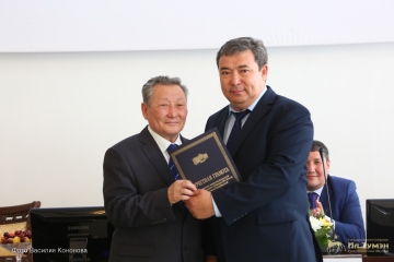 Народный депутат вручил Почетную грамоту постоянного комитета Государственного Собрания (Ил Тумэн) по здравоохранению, социальной защите, труду и занятости за многолетний добросовестный труд и весомый вклад в развитии высшего профессионального образования и за заслуги в подготовке врачебных и научных кадров кандидату медицинских наук, доценту кафедры «Госпитальная хирургия и лучевая диагностика» Медицинского института Северо-Восточного федерального университета имени М.К. Аммосова Анатолию Григорьеву.