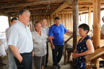Бастатан туран, Александр Николаевич сайылык фермаларыгар сылдьан ферма үлэһиттэрин олорор усулуобуйаларын, үлэлэрин сиһилии билистэ. Ил Түмэн бэрэссэдээтэлин бөлөҕө Дьаҥхаады нэһилиэгэр Андрей Лукич Холмогоров салайааччылаах “Солооһун” кэпэрэтиип “Долоон” уонна “Моҕоллой” сайылыктарыгар күнүскү ыам кэмигэр ыанньыксыттары, ньирэй көрөөччүлэри кытта көрүстэ. “Долооҥҥо” 92 ыанар ынах турар, ону таһынан 200-чэкэ калмыык боруода сүөһү баар. Сайылык ыанньыксыттара күҥҥэ биир ынахтан 8 киилэ кэриҥэ үүтү ыыллар.