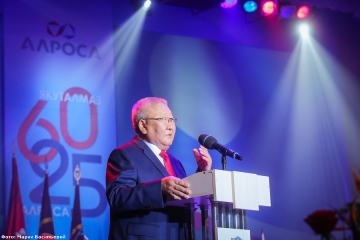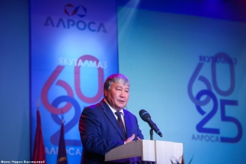 Глава Республики Саха (Якутия) Егор Борисов отметил, что юбилейные даты алмазной компании совпадают с 385-летием вхождения Якутии в состав Российского государства. И 60 трудовых лет из этого периода ознаменованы развитием в республике алмазной промышленности. Этапы становления и развития алмазной компании неразрывно связаны с историей республики. И сегодня «АЛРОСА» и Якутию связывают тесные, конструктивные взаимоотношения. «Сегодня благодаря единой позиции акционеров, руководства и трудового коллектива, АК «АЛРОСА» успешно решает новые задачи. Преумножая достижения минувших лет, обеспечивает почти две трети доходной части бюджета Якутии. Правительство республики и дальше будет поддерживать позицию компании», – сказал Егор Борисов.
