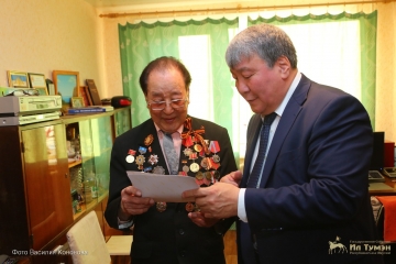 Далее Александр Жирков побывал в гостях у ветерана войны Романа Романовича Охлопкова, уроженца Суоттунского наслега.
