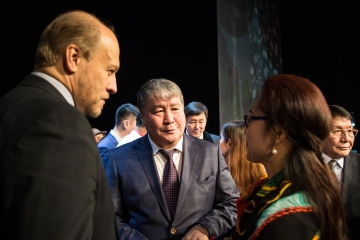После спектакля зрителей приветствовали руководитель делегации нашей республики - Председатель Государственного Собрания (Ил Тумэн) Республики Саха (Якутия) Александр Жирков, государственный советник Республики Саха (Якутия) Андрей Борисов, министр культуры Владимир Тихонов.