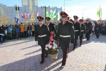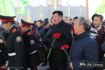 В церемонии возложения цветов к памятнику выдающемуся сыну якутского народа, государственному и политическому деятелю, одному из основателей государственности республики Максиму Кировичу Аммосову приняли участие председатель постоянного комитета Государственного Собрания (Ил Тумэн) Республики Саха (Якутия) по государственному строительству и законодательству Алексей Еремеев, заместитель председателя Правительства  Республики Саха (Якутия) Александр Соловьев, проректор Северо-Восточного федерального университета имени М.К. Аммосова Василий Саввинов, народные депутаты, представители органов исполнительной власти Якутии, делегация Намского улуса, профессорско-преподавательский состав, сотрудники, студенты университета, общественность города Якутска.