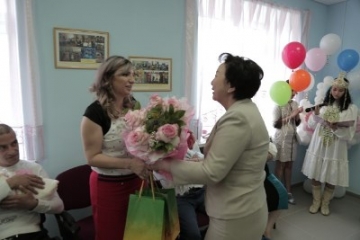 От имени Ил Тумэна семью Арагонян поздравила Председатель комитета по науке, образованию, культуре, СМИ и делам общественных организаций Антонина Григорьева: