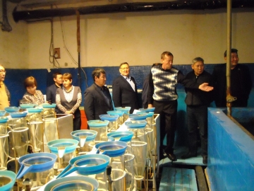 Парламентарии побывали в цехах рыбоводного завода. Директор Иван Макаров рассказал о том, как разводят личинки рыб. Икру заготавливают на традиционных северных участках: её отбирают, отмывают, оплодотворяют и размещают в икрохранилище. Затем живую икру транспортируют с участка в инкубационный цех и загружают в специальные аппараты. Специалисты-рыбоводы под контролем инкубируют икру. После выклева личинок их выдерживают в специальных бассейнах, затем личинки транспортируют до водоёмов, в которых и происходит зарыбление.