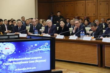 Состоялась предновогодняя встреча Главы Республики Саха с руководством Госсобрания (Ил Тумэн), председателями постоянных комитетов и комиссии парламента, руководителями фракций, членами правительства, главами муниципальных образований, руководителями территориальных подразделений федеральных органов, крупных хозяйствующих субъектов и общественных объединений.